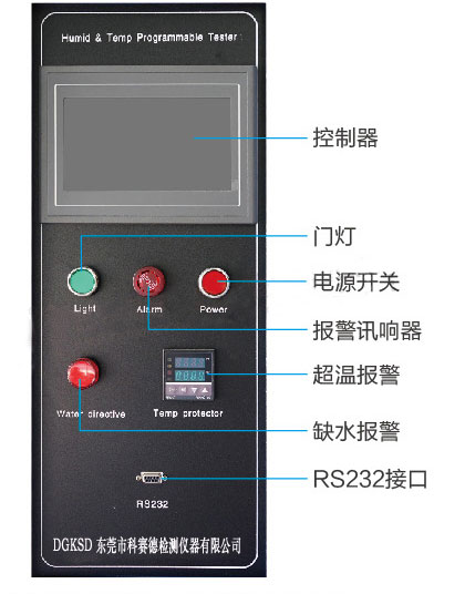 門(mén)燈:測(cè)試中若欲觀察箱內(nèi)變化狀況時(shí),開(kāi)啟此開(kāi)關(guān),由視窗知曉?xún)?nèi)部變化情形。